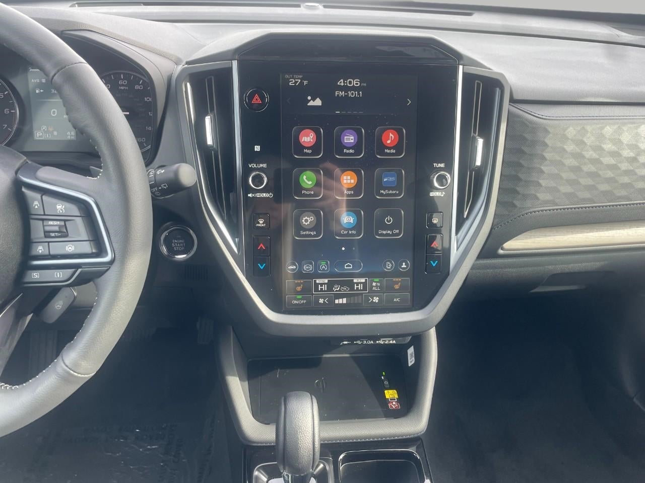 - Radio: Subaru 11.6" Multimedia Plus System -inc: valet mode, integrated center information display, AM/FM stereo HD Radio, multi-touch gesture high resolution display screen, voice activated controls, Bluetooth® audio streaming and hands-free phone connectivity w/SMS text messaging (refer to Subaru.com for cellphone compatibility), iPod control capability, smartphone integration: Android Auto and Apple CarPlay w/full screen view and wireless connection, SiriusXM satellite radio w/360L (free 4-month trial subscription included), USB and Over The Air (OTA) audio system update, steering wheel controls, 6 speakers, 3.5mm auxiliary input jack and roof mounted audio and satellite antenna