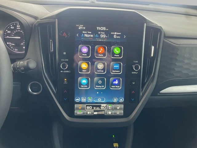 - Radio: Subaru 11.6" Multimedia Plus System -inc: valet mode, integrated center information display, AM/FM stereo HD Radio, multi-touch gesture high resolution display screen, voice activated controls, Bluetooth® audio streaming and hands-free phone connectivity w/SMS text messaging (refer to Subaru.com for cellphone compatibility), iPod control capability, smartphone integration: Android Auto and Apple CarPlay w/full screen view and wireless connection, SiriusXM satellite radio w/360L (free 4-month trial subscription included), USB and Over The Air (OTA) audio system update, steering wheel controls, 6 speakers, 3.5mm auxiliary input jack and roof mounted audio and satellite antenna