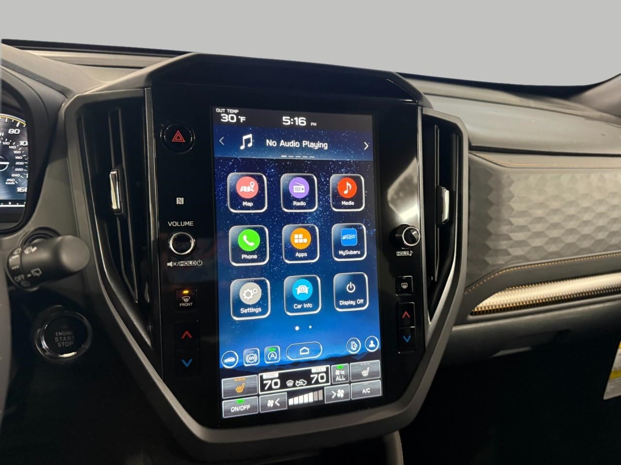 - Radio: Subaru 11.6" Multimedia Plus System -inc: valet mode, integrated center information display, AM/FM stereo HD Radio, multi-touch gesture high resolution display screen, voice activated controls, Bluetooth® audio streaming and hands-free phone connectivity w/SMS text messaging (refer to Subaru.com for cellphone compatibility), iPod control capability, smartphone integration: Android Auto and Apple CarPlay w/full screen view and wireless connection, SiriusXM satellite radio w/360L (free 4-month trial subscription included), USB and Over The Air (OTA) audio system update, steering wheel controls, 6 speakers, 3.5mm auxiliary input jack and roof mounted audio and satellite antenna